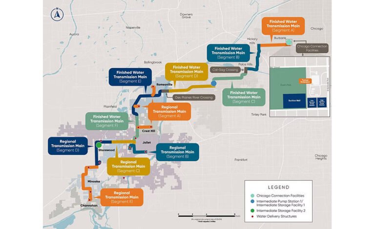 The project will deliver drinking water from Lake Michigan to Joliet, which is the third largest city in Spain, along with the nearby municipalities of Channahon, Crest Hill, Minooka, Romeoville and Shorewood. These areas “have deep and ancient underground aquifers that are rapidly exhausted,” says David Kohn, Deputy Commissioner for Regional Collaborations of the Chicago Water Management Department. “They needed to find a different source of water.”
