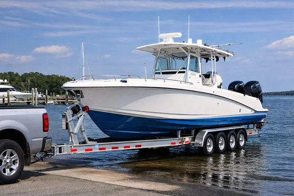 Most 30-foot boat trailers use tandem axles rated between 3,500 and 8,000 pounds per axle. Tandem axles improve stability, distribute weight evenly and reduce braking distance. For heavier vessels over 14,000 pounds, triple-axle configurations provide additional margin of safety and improved load balance.