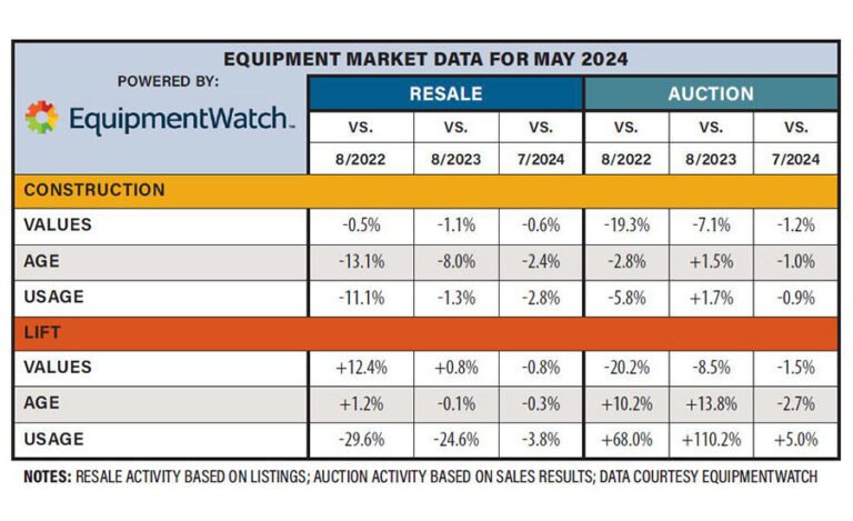 EquipWatch data shows that while construction equipment prices have largely held steady for some time in resale channels and at auctions, there has been a parallel decline in age and ‘use of the machines, suggesting that fleets of equipment tend to be updated periodically, rather than remaining old. iron “We’re seeing newer equipment coming in,” Pierce notes, adding that his August data from 2022 shows that “age and usage are noticeably lower, but not by a large amount.”