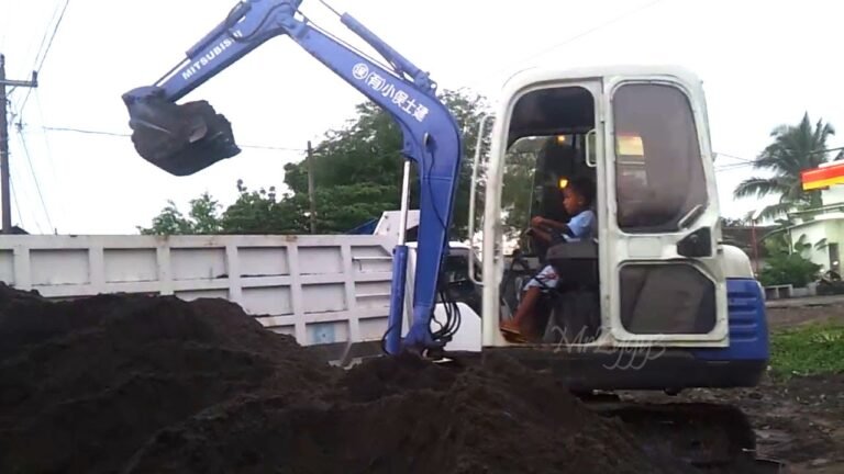 You are at:Home » 5 Year Old Kid Loading Dump Truck Using Mitsubishi Mini Excavator