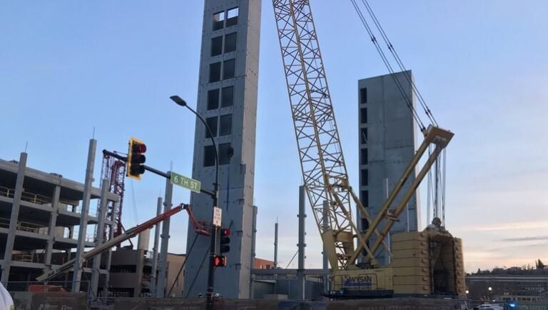 Luke Jessen, Lloyd’s vice president of development, said in a statement that a product failed in the corner of one of the elevator shafts, causing the problem. The location of the failure point caused the tower to move 1 inch at its base.
