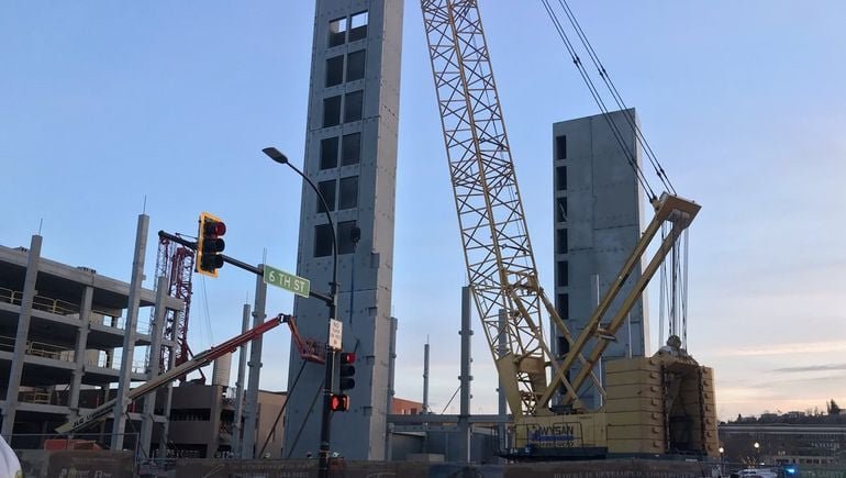 • On November 30, construction workers noticed north lift bar it had moved and was tilting south, according to local news outlet KELO. Authorities evacuated the nearby area, along with neighboring buildings. The evacuation was lifted on Friday.