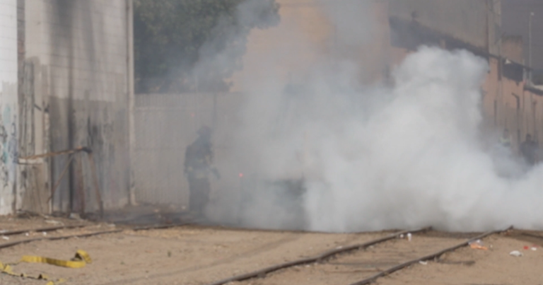 A backhoe tractor catches fire, an explosion was heard in Santa Maria