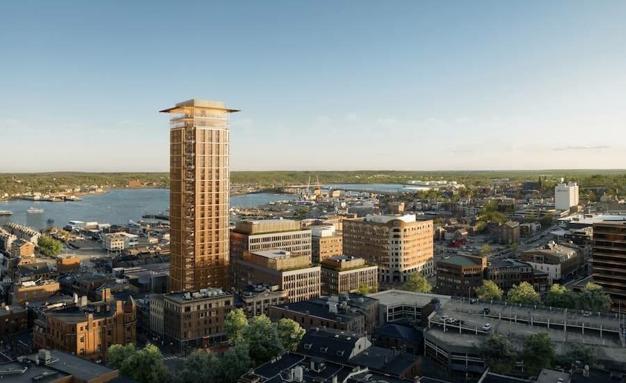 The project will also have a transparent base 33 feet high with two lobbies and an interior/outdoor coffee. A 100 bedroom hotel will be housed at the top 10 stories above the lobby and 13 floors of one and two rooms units of condominiums will occupy the floors above. A vault wood and a glass pavilion will crown the tower as a “metaphor for the lighthouse of a lighthouse”. A public lobby and restaurant will be built on top of the slender building for panoramic views of the helmet bay and the new Hampshire white mountains.