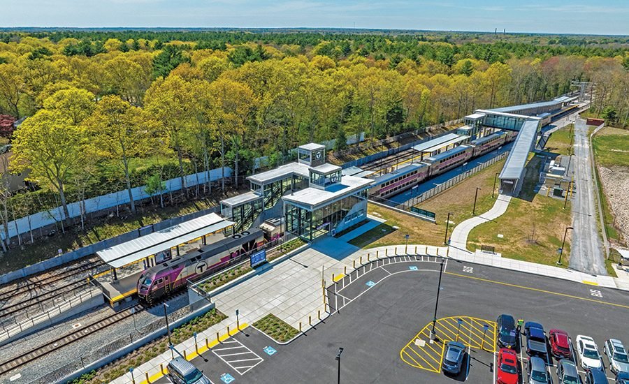 The $1 million project restores commuter rail service between Boston and three previously underserved cities with nearly 40 miles of new track, six new stations, 12 bridges, 28 level crossings and two new stairwells.