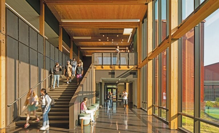 To create a warm and welcoming environment for 150 students who are deaf or hard of hearing, this $53 million LEED Gold solid wood structure offers a non-institutional aesthetic while serving as a critical element to support deaf users’ interaction with the physical environment.