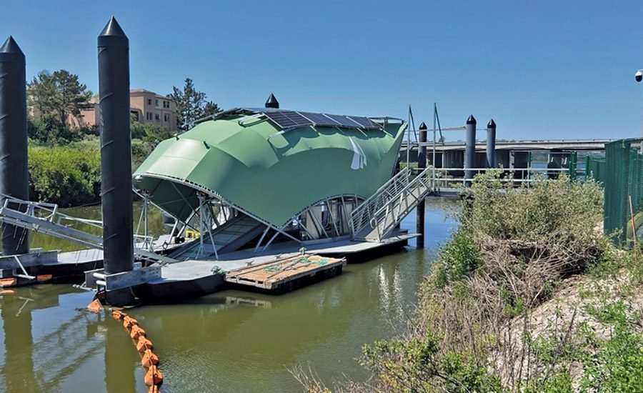 The floating platform rises and falls with streams and tidal cycles, minimizing environmental disruption while ensuring resilience during storm events and future weather conditions.