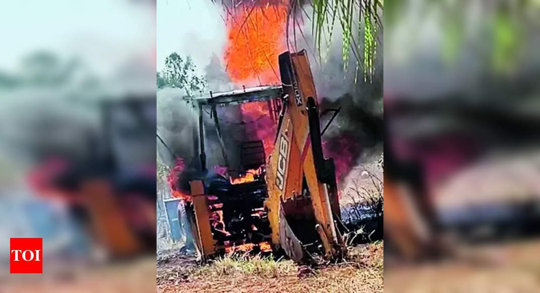 Bengaluru: A father-son duo has been arrested by the Rajankunte police for allegedly setting up a backhoe on fire while opposing an invasion clearance unit carried out by the Bangalore District Administration.