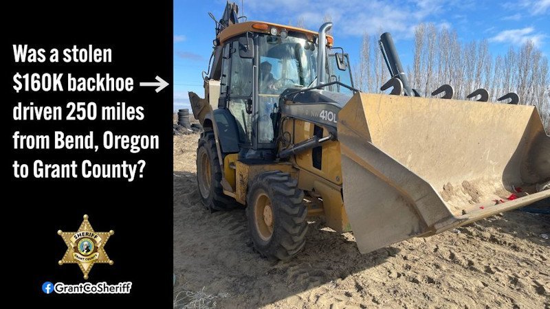 BEND, Ore. (KTVZ) – Authorities found a backhoe stolen from a construction site near Bend two days later and 250 miles north near Mattawa, Washington. And his GPS tracker showed he made the trip at about 25 mph, meaning he may have been driving on the road for the entire 10-hour trip.