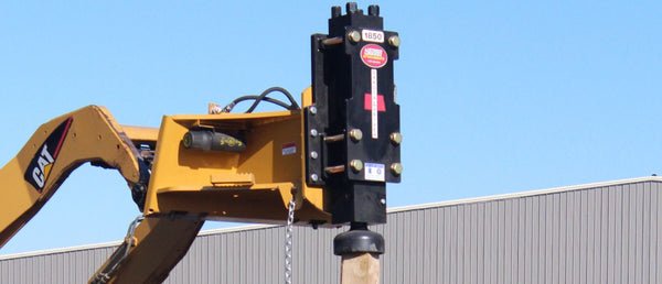 The PD-1600 is the next size up in the Dakota Driver line. The PD-1600 drives wood or steel poles up to 7.125 inches in diameter, while delivering 500 to 900 strokes per minute. This attachment averages 877 pound-feet of impact force while weighing only 1150 pounds.
