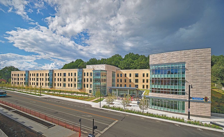 Despite a 10-month delay due to the pandemic, the four-story, $49 million residence was completed three months ahead of schedule and under budget thanks to a proactive design aid effort in the preconstruction phase, strict construction protocols and off-site prefabrication of exterior wall and building system components. The team says it has made the most of the added time. Developed and refined a logistics plan that would minimize disruptions, maintain a secure environment, address budget issues, manage supply chain issues and workforce availability, and fully define roles and responsibilities across team