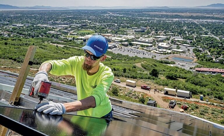A temporary attraction at the school since 1937 has finally been built into the Ogden foothills as a permanent feature. Weber State University’s mountain “W” monogram is now a permanent, 8-inch-thick shotcrete slab that can be remotely illuminated. The shotcrete slab structurally supports purple solar panels that generate more energy than the W requires for its lighting, with the surplus going to other uses by the university.