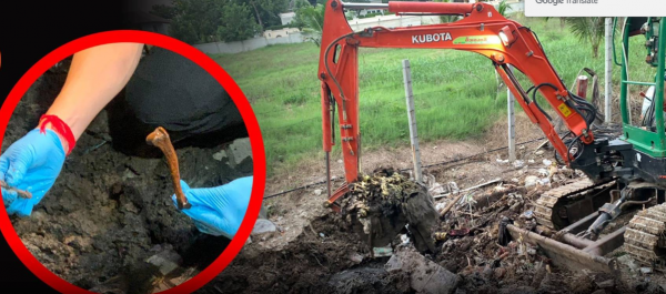 Police yesterday (Wednesday) found two pieces of bone buried in a vacant lot behind a gas station on Phahonyothin Soi 56 in Bangkok, after using a backhoe to excavate an area where the suspect in the multiple murder of a boy, Songsak, and his former partner, Jesada, claim to have disposed of the bodies of their four children over several years.