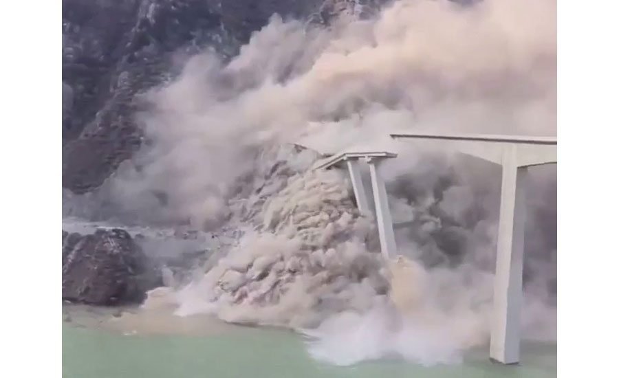 The mountainous region is seismically active, but no earthquake was reported as the cause of the landslide or collapse.