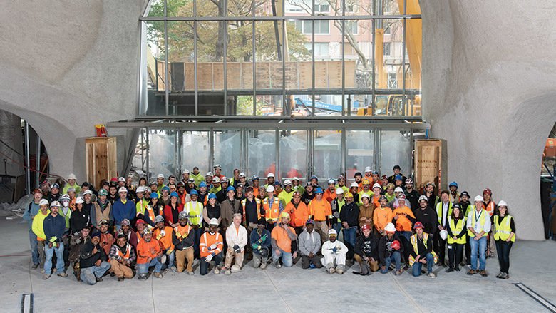 At the Gilder Center, after structural engineer Arup suggested shotcrete to form the canyon walls and pedestrian bridges, Tishman searched the nation for a specialist capable of handling the non-orthogonal structure. After seeing three mock-ups, Tishman awarded the job to Wisconsin’s COST, because it had the best understanding of the shapes and the lowest bid.