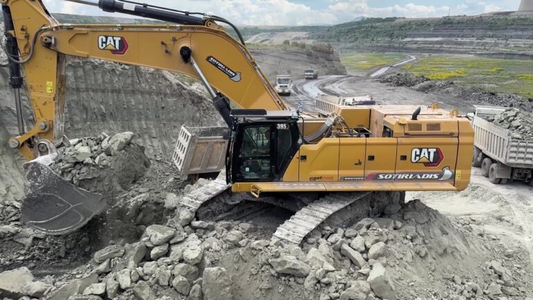 Caterpillar 395 Excavator Loading Trucks With Two Passes – Sotiriadis Mining Works – 4k