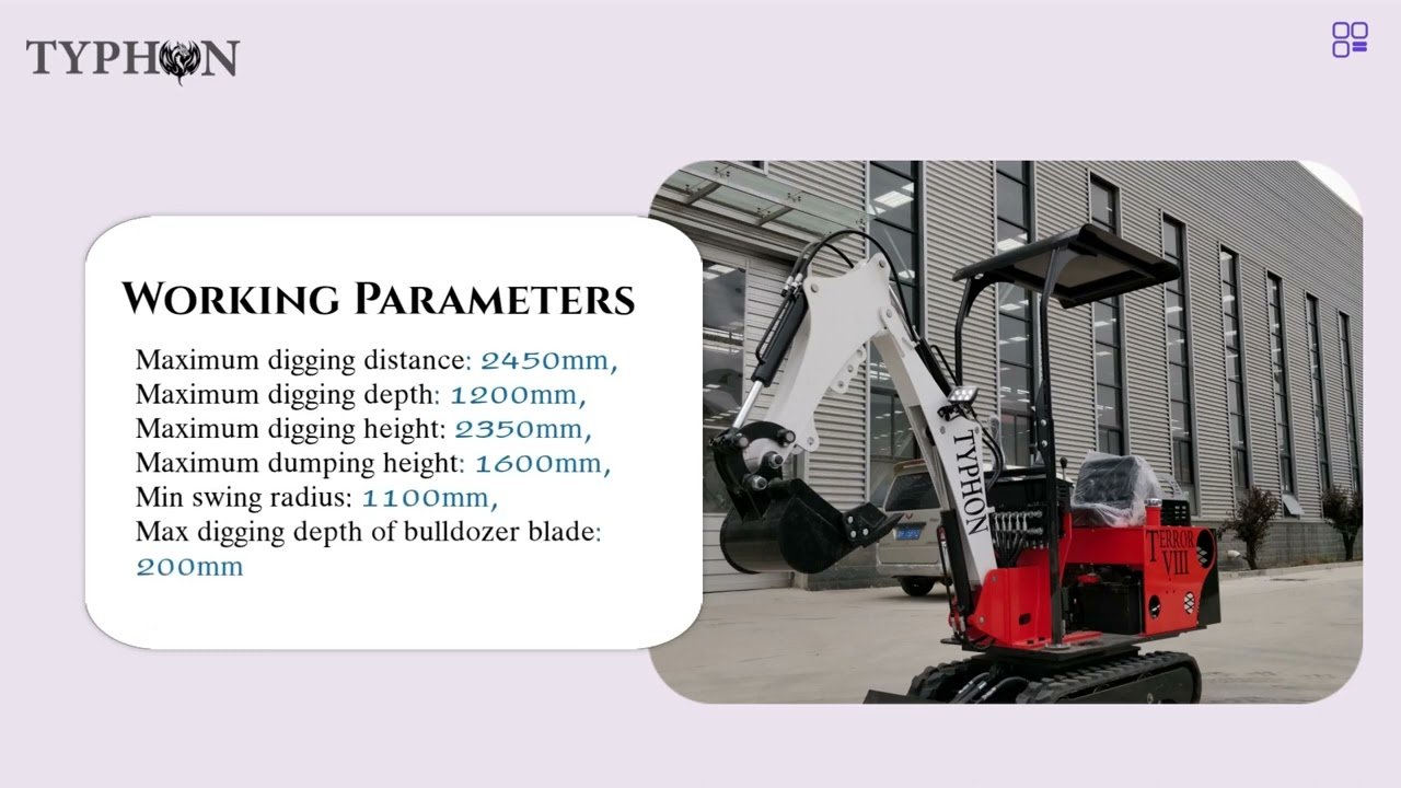 Crawler Excavator for Construction Works, TYPHON Mini Excavator, Suitable for Farms, Roads, Parks