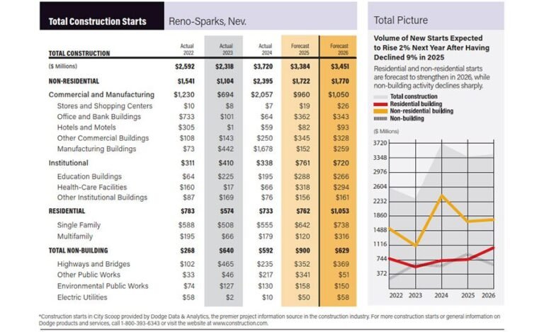 Reno’s construction market continues to demonstrate broad resilience in the industrial, multifamily and commercial sectors, supported by steady population growth, ongoing business relocation and sustained investment in public infrastructure, Clutts says.