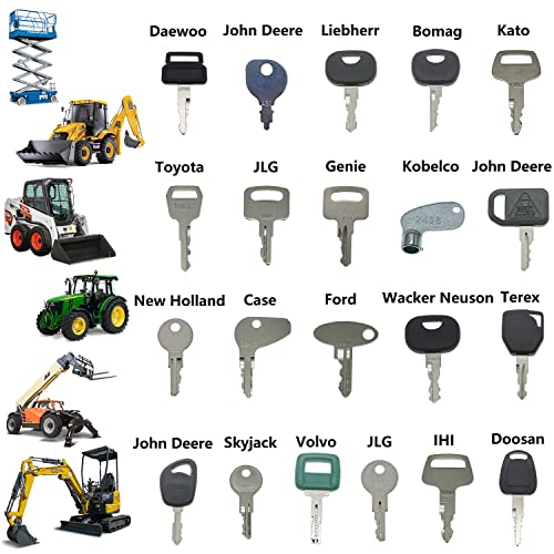 You are at:Home » EISENS (41) Heavy Equipment Key Set Compatible with John Deere Case Caterpillar Komatsu JCB Kubota Bobcat JLG Genie Volvo Kobelco Doosan Takeuchi New Holland Hyster Hyundai Clark Toyota Daewoo Terex
