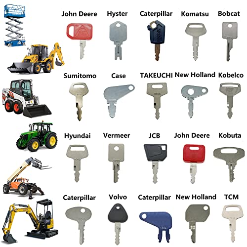 EISENS (41) Heavy Equipment Key Set Compatible with John Deere Case Caterpillar Komatsu JCB Kubota Bobcat JLG Genie Volvo Kobelco Doosan Takeuchi New Holland Hyster Hyundai Clark Toyota Daewoo Terex