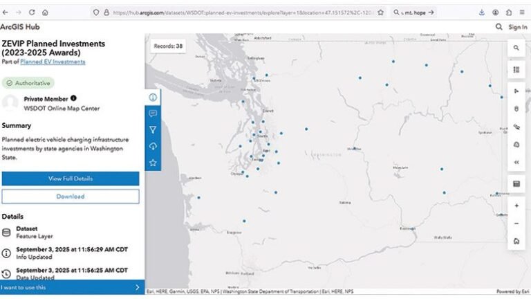 There were more than 200,000 EVs registered in the Evergreen State in 2024, which was more than 20% of new vehicle sales. In order to meet current and future demands for EV collection infrastructure, WSDOT was associated with the Washington State Department of Commerce to create the EV-MAP Map and Planning tool, an interactive map based on ESRI Sig technology that brings together 100 public data sets related to infrastructure and demand EV. Among the layers of the map are existing charging stations, EV (projects awarded by Grant not yet built), traffic counts and pre-modelled travel routes, as well as EV records and needs planned by the group and the Blogs Group. Pre-Model travel and traffic counts can help motorists planning travel.