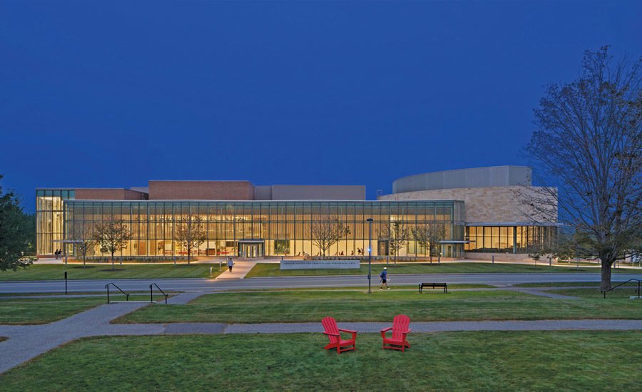 The largest academic project in Colby College’s history and the new home of its music, film and performance studies, theater and dance departments, this $95 million, 74,000-square-foot building features flexible performance areas and versatile