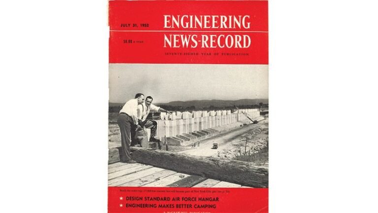 This cover from 1952 shows two huge concrete caissons sitting on a natural dry dock at Stony Point, New York.