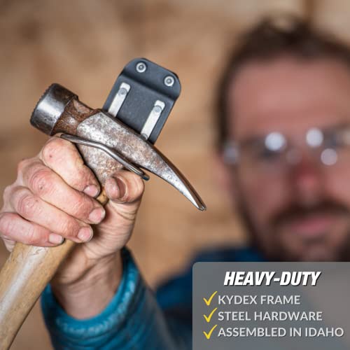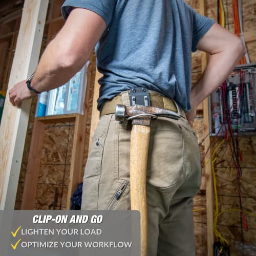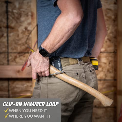 A BETTER HAMMER LOOP | Carry your hammer, hatchet, or mallet in this lightweight, minimalist loop that clips easily on and off your belt, pockets, or tool bags.EASY TO CLIP-ON/OFF | Fits belts and straps up to 1.75″ (45mm). Doesn’t need to thread onto your belt. Take it off quickly when you’re done working or getting into a vehicle.WORKS WITH A WIDE RANGE OF HAMMERS | Firmly holds a framing hammer, sledgehammer, hatchet, ax, rubber mallet, ball peen hammer, dead blow hammer, claw hammer, tack hammer, drywall hammer, welding hammer, rock hammer, brick hammer, electrician hammer, and more!LOW-PROFILE PROFESSIONAL LOOK | Holds snug to your belt and doesn’t get tattered like nylon or leather hammer loops.