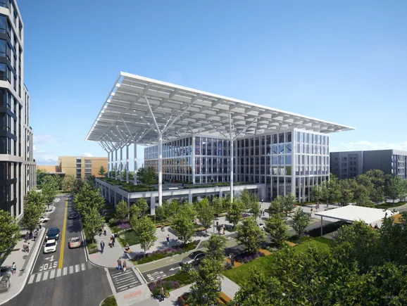 The building, designed by the Francisco Architecture and Design Firm, Gensler, will be fed by a photovoltaic solar marquee and 100,000 -feet wind turbines, which the contractor said will compensate for all his energy needs, according to a statement. The company Plans announced for the structure In November 2023.