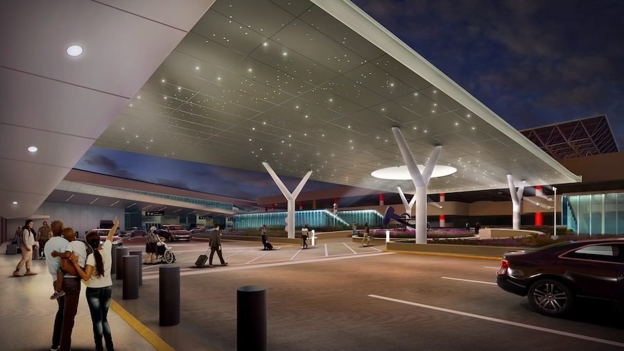 Manning, who is leading the Southwest Airlines project as he did the original room, calls it “the hardest thing I’ve ever done.” It has three main components: installing the 30-foot-tall, 40-foot-wide, 150-foot-long canopy; build an outdoor square; reform the baggage claim area; and install the Leonardo baggage handling system.