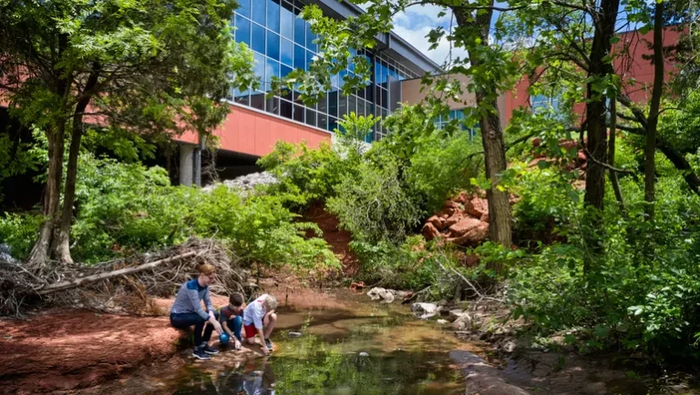 The school’s hilltop site offers views of Austin’s business district and a walking path connects it to Austin Community College. Other highlights include a community center within the school and a gallery with the history of LC Anderson High School and items of historical significance.
