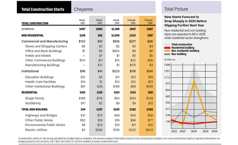 Benford claims that the demand for construction in the south -wyoming is expected to continue until the end of the year. “The construction of the data center and commercial construction, whether community icons such as Cheyenne Frontier Days and Fe Warren Air Force Base or New School Construction and Renewing School” are great profile projects.