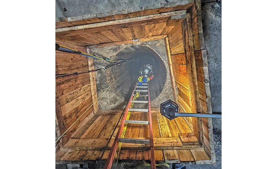 While the Coppola team adapted to the conditions and made progress by installing the coating, the most significant problem of the project was waiting at about 300 feet: a 3-in. by 8 in. The wall cavity that published up to 100 gallons of water from the East river every minute to the sewer.