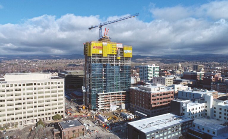 New residential, mixed-use and hospitality projects make up the bulk of current activity in the city centre. At the intersection of 12th and Idaho streets, Arthur Tower, a 26-story mixed-use project with retail and 298 residences, rises on what was once the site of a surface parking lot. The $140 million project was a public-private partnership between the city and 12th and Idaho LLC, a joint venture of several developers. Designed by Chicago-based Soloman Cordwell Buenz and Associates and built by Boise-based McAlvain Construction, Arthur will feature two levels of rooftop amenities, including a pool behind an irregular roofline that references the nearby Sawtooth Mountains.