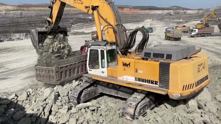 Liebherr 974 Excavator Loading Mercedes And MAN Trucks