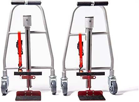 *Pake Handling Tools – Manual Machinery Mover are design for use safe, easy lifting and transportation of large, bulky loads. This 2 piece dolly set can lift 1100 lbs and 12 inch height, , and each unit is equipped with lifting platform, bevel gear, operation handle, support frame and moving frame, casters, and all mounting hardware. The nylon straps and ratchet mechanism keep the load in place. It has Two Strap Belts with each length: 96″. Lifting plates: 9” X 4.72”. Overall dimensions (Single): 23″ L x 12.6″ W x 33.3″ H.