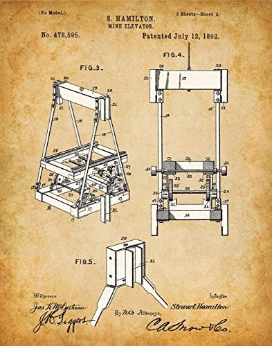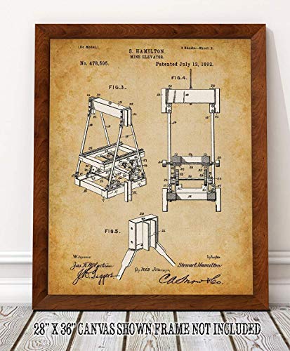 You are at:Home » Mine Elevator Patent Print – Heavy Machine Poster, Classic Home Office and Cabin Decor, Man Cave Display, Gift for Miners and Mining Company Owners, Choose Unframed Vintage Poster or Canvas Prints