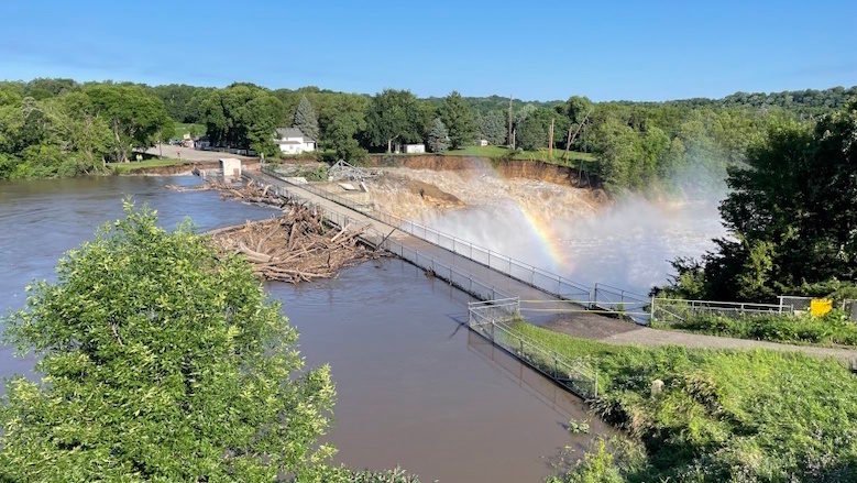 “The water found the path of least resistance on the west side of the dam,” said Ryan Thilges, county engineer and director of public works for Blue Earth County. He also said a small park building was damaged by water flowing west of the dam, as was a substation that provides power to about 600 homes in the area.