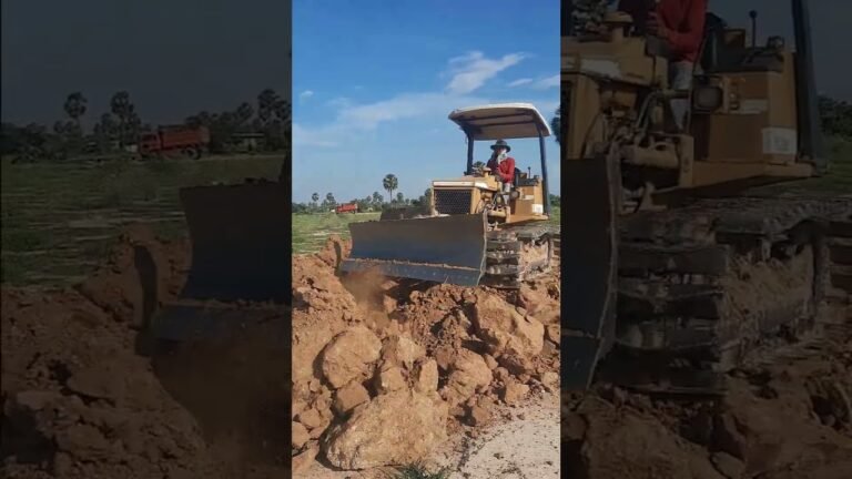 Mitsubishi BD2g Dozer​ With 5TN Dump Trucks Build Road At rice Field. 5TN Dump Truck Unloading Land,