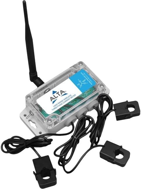 The ALTA Industrial Wireless Three Phase Current Meter (150 Amp) measures the RMS current of an alternating current (AC) system using 3 current transformers (CTs) that wrap around the wires of a three phase power system. The sensor reports Minimum RMS current, maximum RMS current, average RMS current, and duty cycle for each phase and the combined amp hours of all three phases to the iMonnit system. The iMonnit system is capable of generating watt hour or kilowatt hour readings as well based on a user specified RMS voltage.
