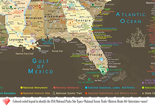 Professionally Made: Created by a professional geographer/cartographer, the research and design for this USA map took over a year. We worked with official National Park Service data to uniquely display and reference ALL of the 600+ sites in the USA. Every reference has been thoroughly researched, symbolized, and carefully labeled on the map. A unique referencing system has been developed for areas that have many National Park Service sites and a unique colored coded label system has been created on the side.