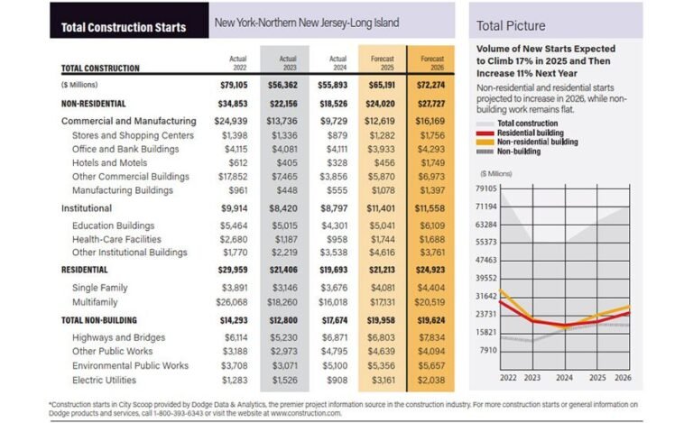 Design and construction work in New York City “remains resilient, with strong momentum in the transportation, residential, office and healthcare infrastructure sectors,” says Collins. “There is a noticeable shift towards renovation and repair projects in good condition. Few sectors have really cooled.”