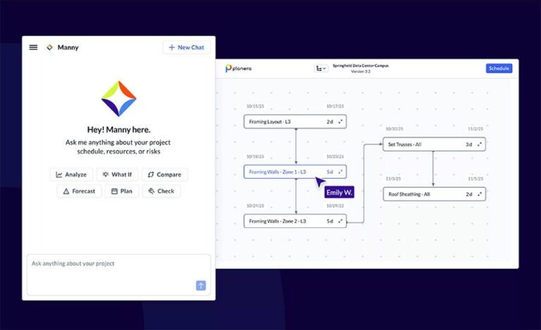 planon April 15, launched “Manny,” an artificial intelligence-based scheduling assistant designed to help construction professionals analyze schedules, understand the impact of delays and changes, and make faster decisions during unforeseen events.