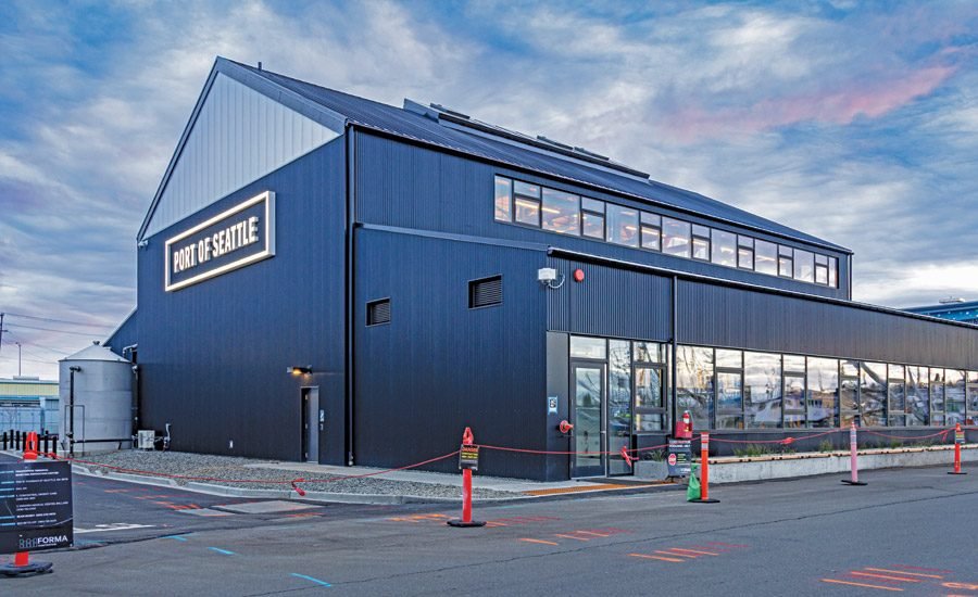 “When we took the building apart and took the skin off, we found the old structure,” says Kelly Purnell, Port of Seattle project manager. “We couldn’t see everything, it was covered. Some of the columns were bent almost 3 inches and some of the columns were sitting on a block of nothing. We had to splice the columns to make them the same length, there was so much change in the way the building sat.”