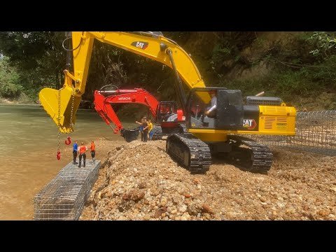 Hello my friend, today 2 excavator making gabion cube project, with rc excavator Hitachi and Caterpillar Come to watching it …