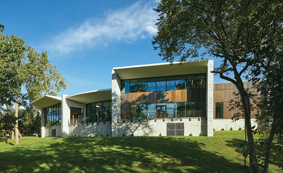 The modern visitor center at Houston’s Glenwood Cemetery, which was established in 1871, is respectful of its historic surroundings, its designer said. “The building is carefully integrated into the master plan, ensuring a seamless transition from the historic setting to the contemporary structure,” said Dillon Kyle, principal and founder of Dillon Kyle Architects, Houston.