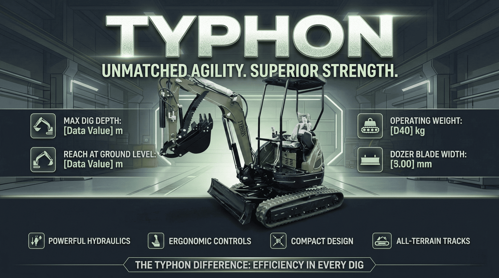 When you move beyond general market specs and look specifically at Typhon Machinery, the compact category takes on a whole new meaning. Typhon has engineered their 2.5 ton lineup—specifically the Terror XXV and the X2 Storm—to address the three biggest complaints contractors have about mini excavators: engine reliability, hydraulic drift, and transport logistics.