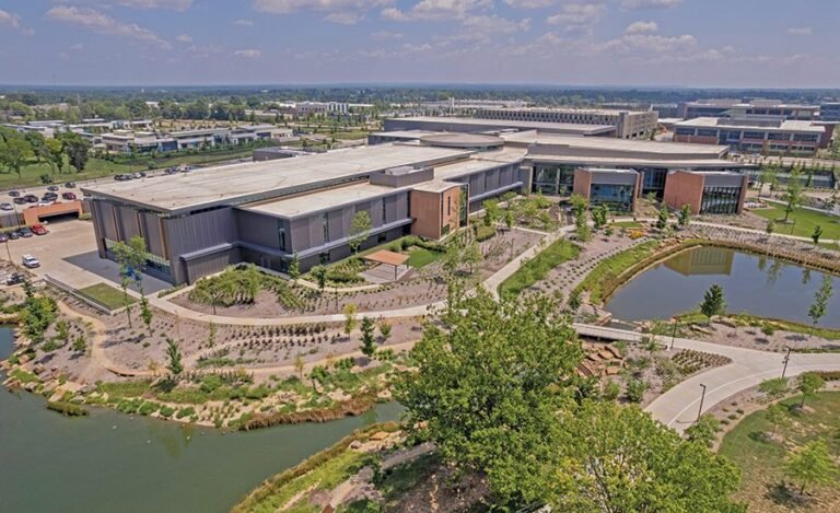 The region’s largest employers remain among its main sources of growth, including Walmart in Bentonville, JB Hunt in Rogers and Tyson in Springdale. One of Walter P Moore’s biggest projects in recent years has been Walmart’s new multi-million dollar 350-acre campus in Bentonville. The project includes 2.4 million square meters of new space for offices, services, parking decks and amenities such as childcare and fine dining. Its 12 office buildings were designed to achieve LEED Platinum certification. The campus runs on 100% renewable electricity. It has more than 115 hectares of native and adapted plantations, including 5,000 trees. Nearly seven miles of walkways and pedestrian paths meander through the campus.