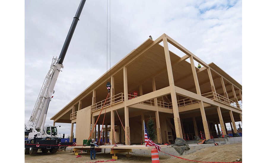 In addition to serving as a sustainable resource, solid wood also leaned toward the owner’s desire for an iconic building that was recognizable, welcoming, and adaptable. However, given the differences of a solid wood system from typical concrete or steel options, the design team worked carefully to find the optimal structural bay, says Adam Luginbill, senior project architect at emersion DESIGN . This allowed the team to maximize the potential of the CLT panels and keep them to a reasonable thickness while minimizing both the size and amount of beams required.
