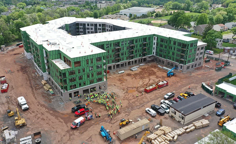The $ 65 million multifamily residential project developed by Klein Enterprises and designed by JDAVIS Architects covers 360,250 square meters in a place of 8 hectares. The five -story building has 278 apartments built on top of a concrete base with four levels of construction framed in wood on top.